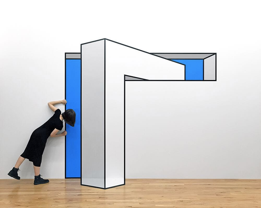 Using only tape and a couple pops of color, the artist Aakash Nihalan is able to do playful work on boring white walls.