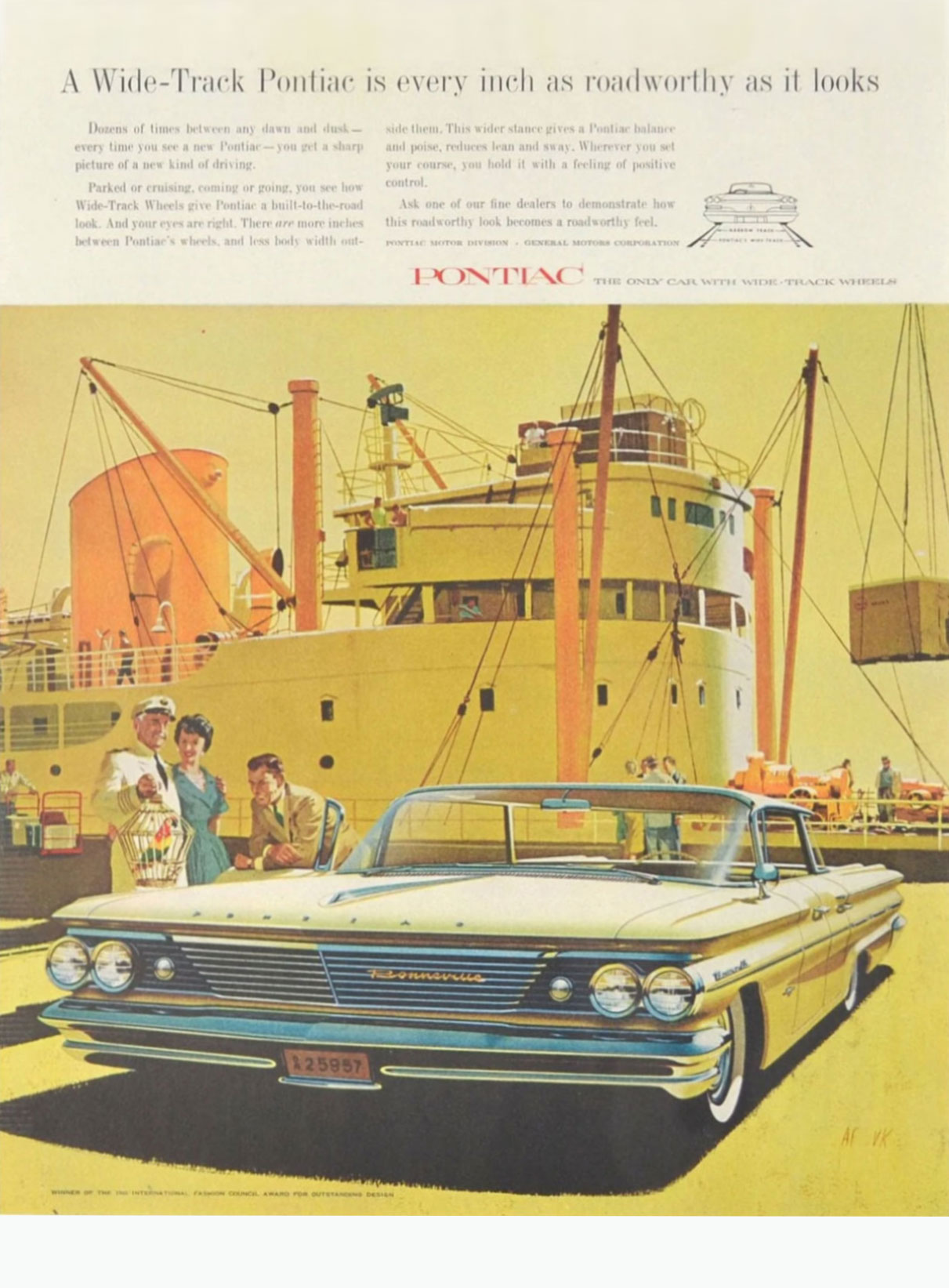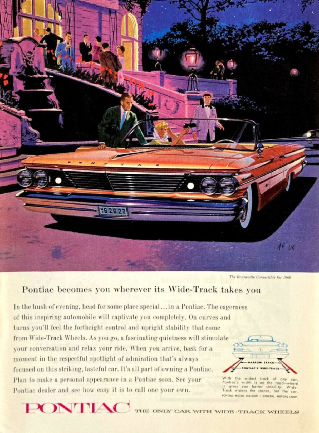 What's interesting in this ad is they chose sunny colors for the story, but a strong black for the Pontiac itself. You can't stop looking at it!